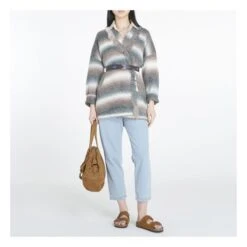 - Tightened at the wrists, Ribbed, Low armholes, Long sleeves, Wide sleeves, Shawl collar