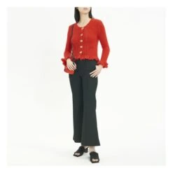 - Ribbed bottom, Round ribbed neckline, Long sleeves, Ribbed cuffs
