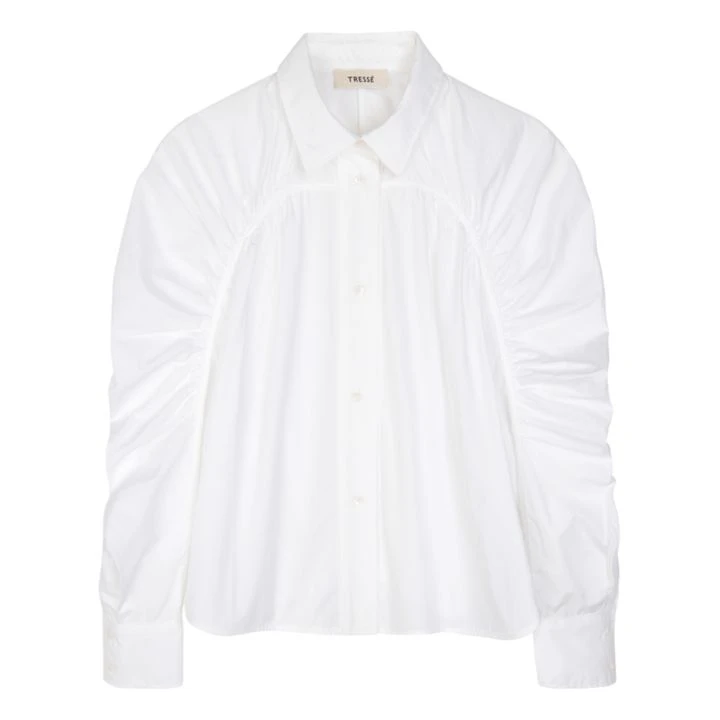- Pleats at sleeves, Long sleeves, Gathered at shoulders, Shirt collar