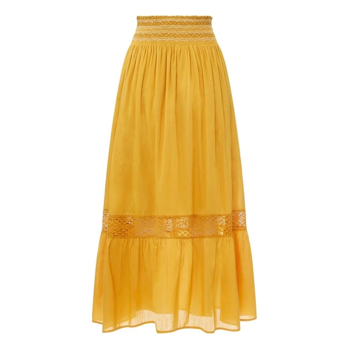 - Embroidered detailing, Bottom slit, Smock waist, Lined, Lace details, Slit side(s), Ruffled, Elasticated waist, Embroidery