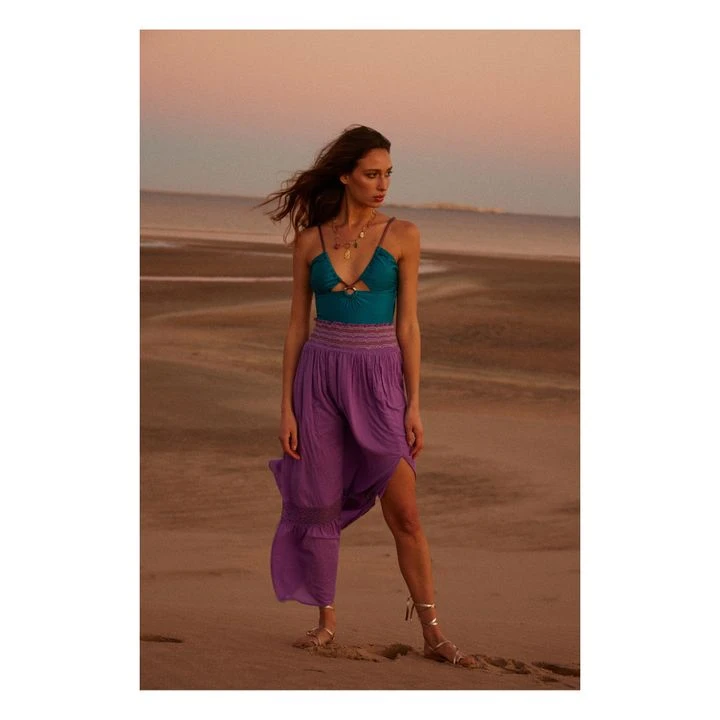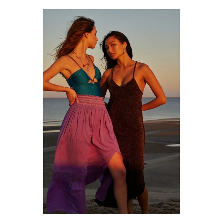 - Embroidered detailing, Bottom slit, Smock waist, Lined, Lace details, Slit side(s), Ruffled, Elasticated waist, Embroidery