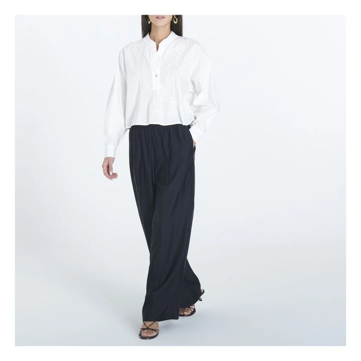 FORTE_FORTE Embroidered Grandad Shirt | Ecru