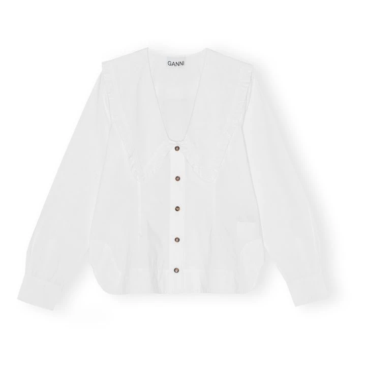 Ganni Organic Cotton Poplin V-Neck Shirt | White