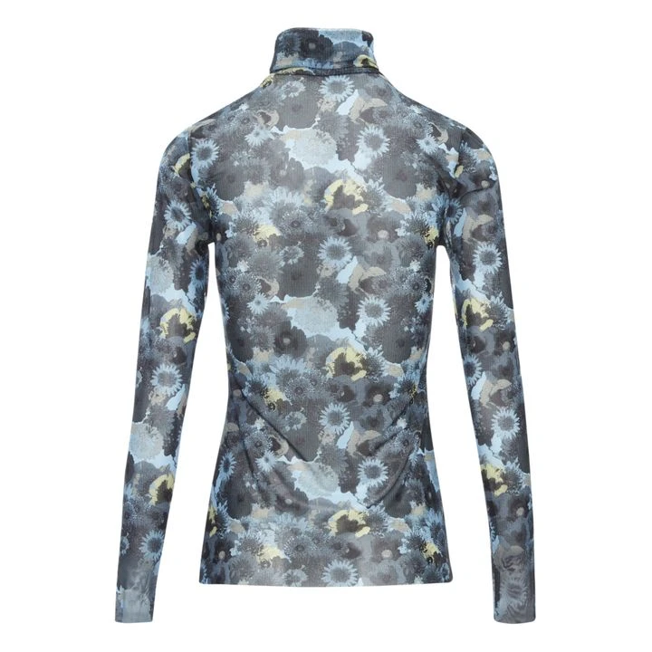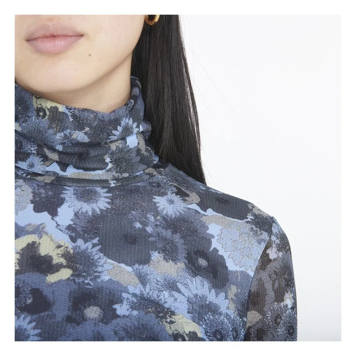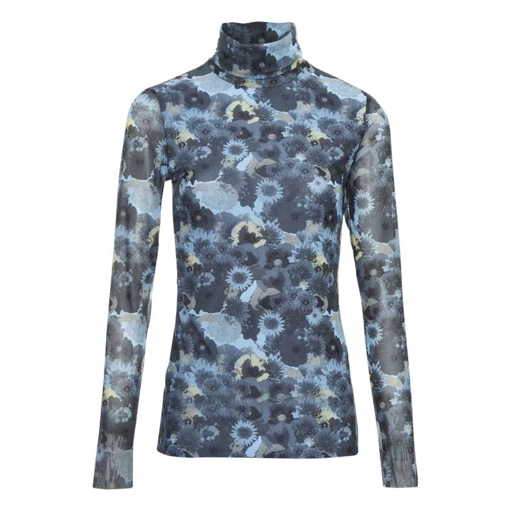 Ganni Roll Neck Floral T-shirt | Blue