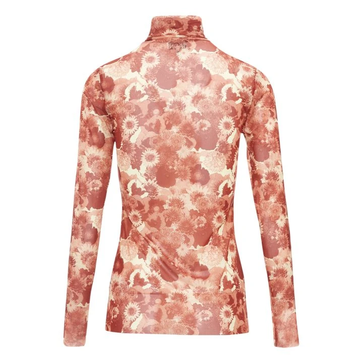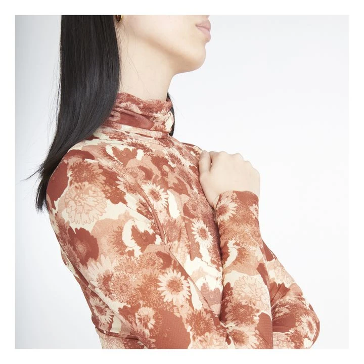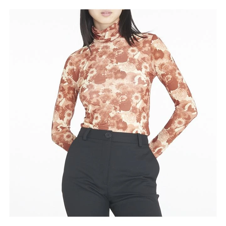 Ganni Roll Neck Floral T-shirt | Terracotta
