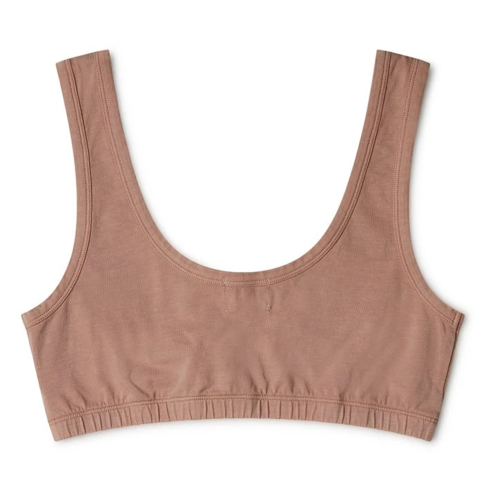 - Elastic band below the bust for support., Sewn-in brand label, Rounded collar, Comfortable