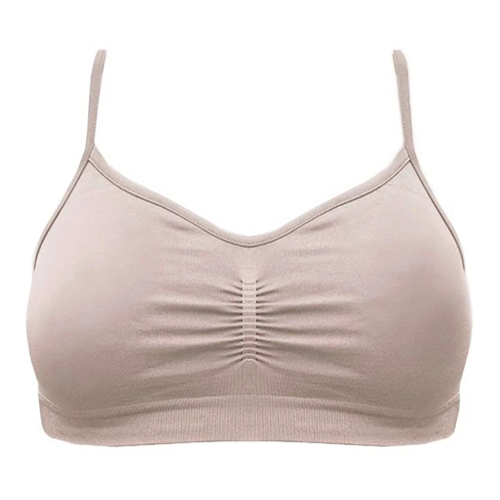 - Ruffle front, Elastic band below the bust for support., Breathable, Ribbed edges, Top stitched edges, Thin straps, Comfortable