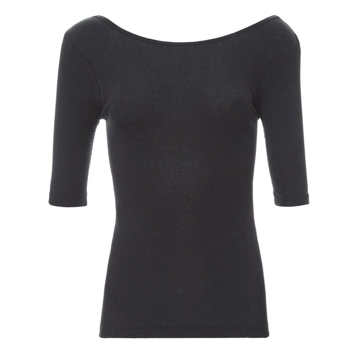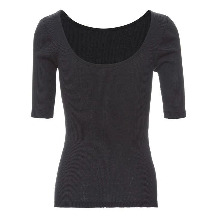 - Soft, 3/4 sleeves, Ribbed edges, Low-cut at back
