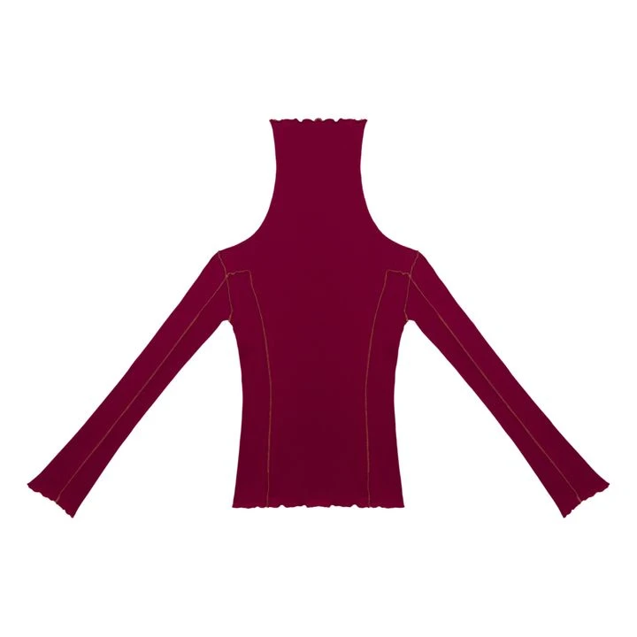 T-shirt Côtelé Omato Turtleneck Coton Bio | Cherry Red